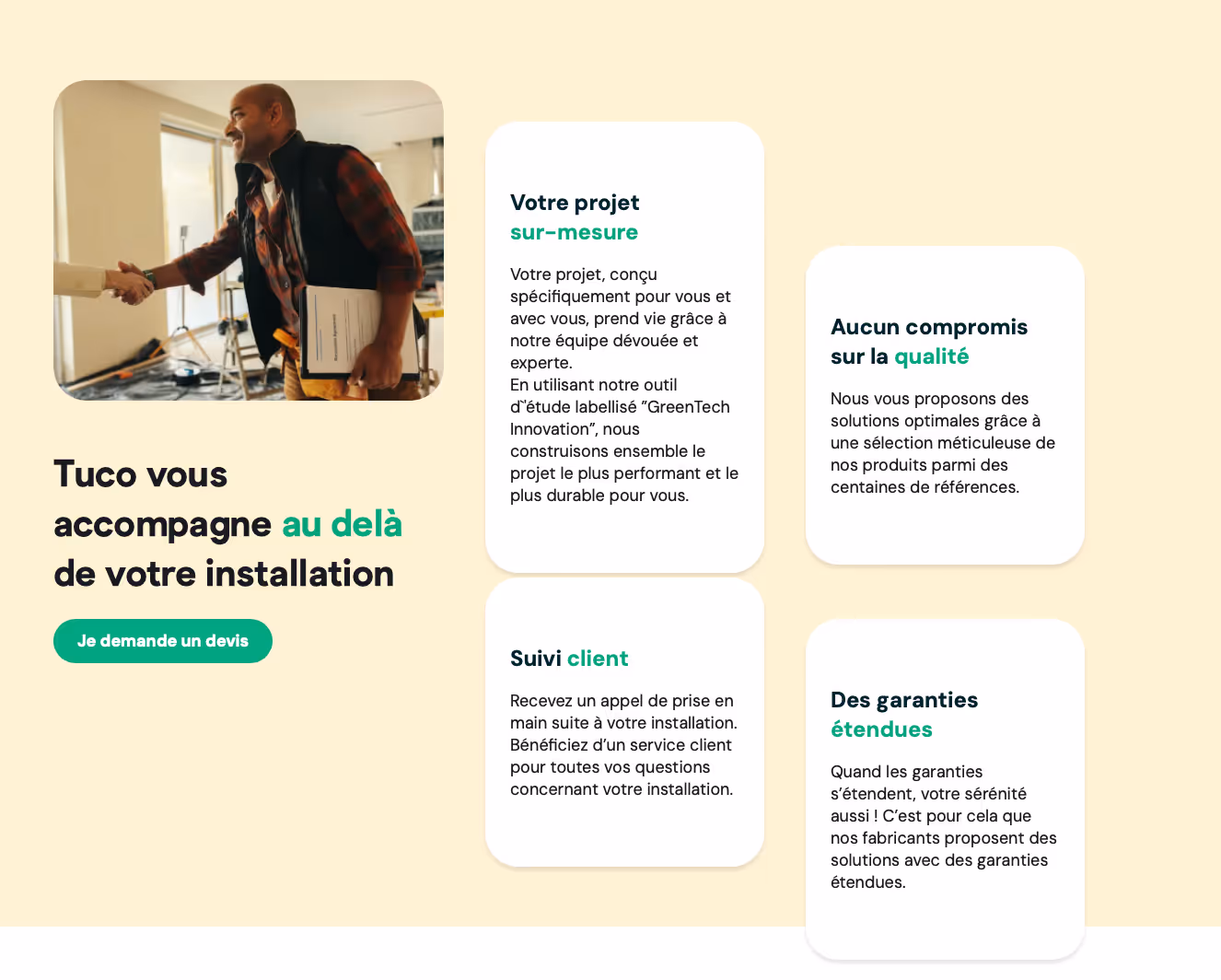 Guidée par ses valeurs de liberté, d’intégrité et d’action, TUCO transforme la rénovation énergétique en une démarche accessible et personnalisée. Que ce soit par un diagnostic précis, une offre adaptée ou un accompagnement sur mesure, chaque projet vise à rendre le pouvoir d’agir aux consommateurs.